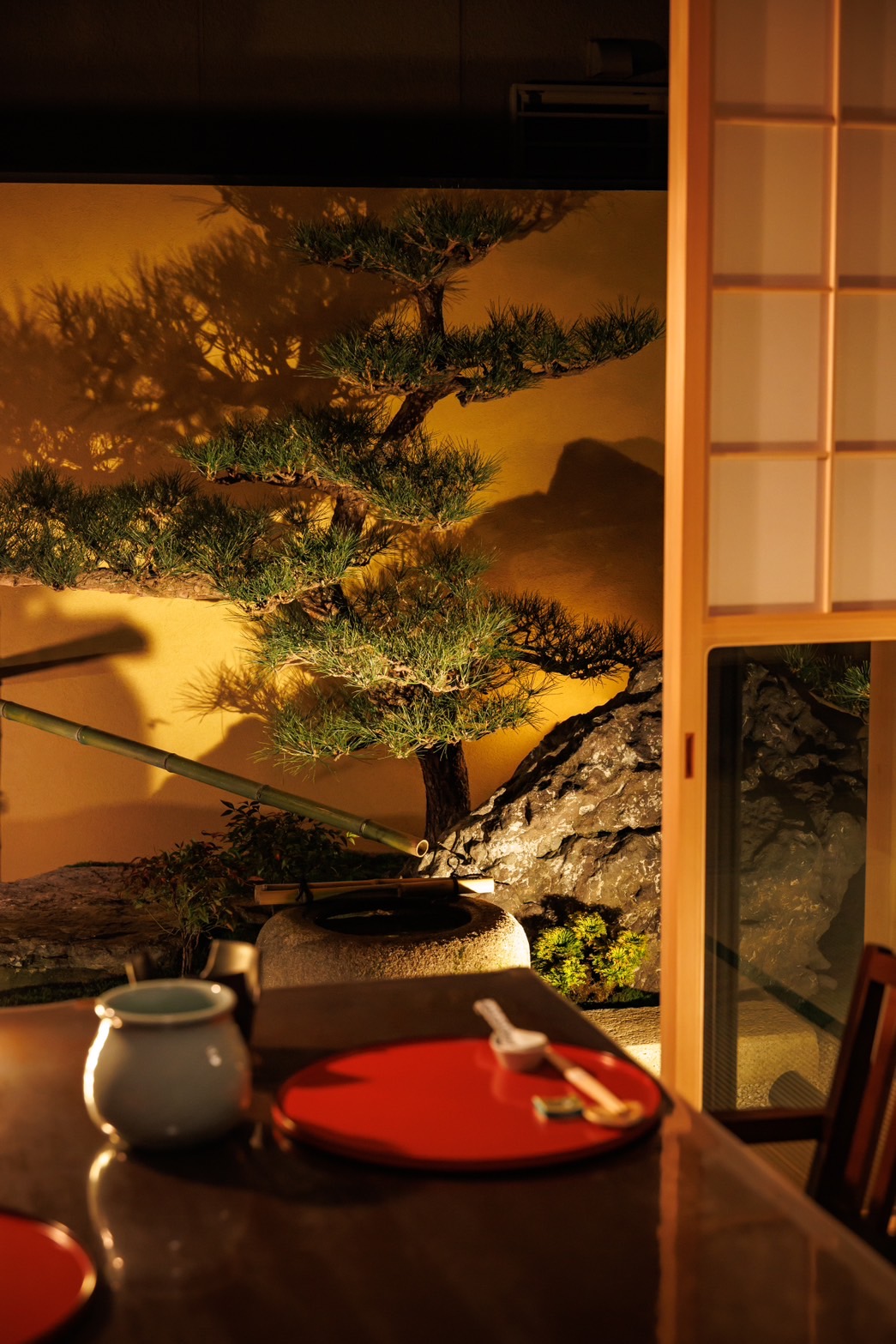 また、お食事部屋からは美しい庭の景色を眺めることができ、都会の喧騒を離れ、ゆったりと食事を楽しめるのも魅力の一つ。